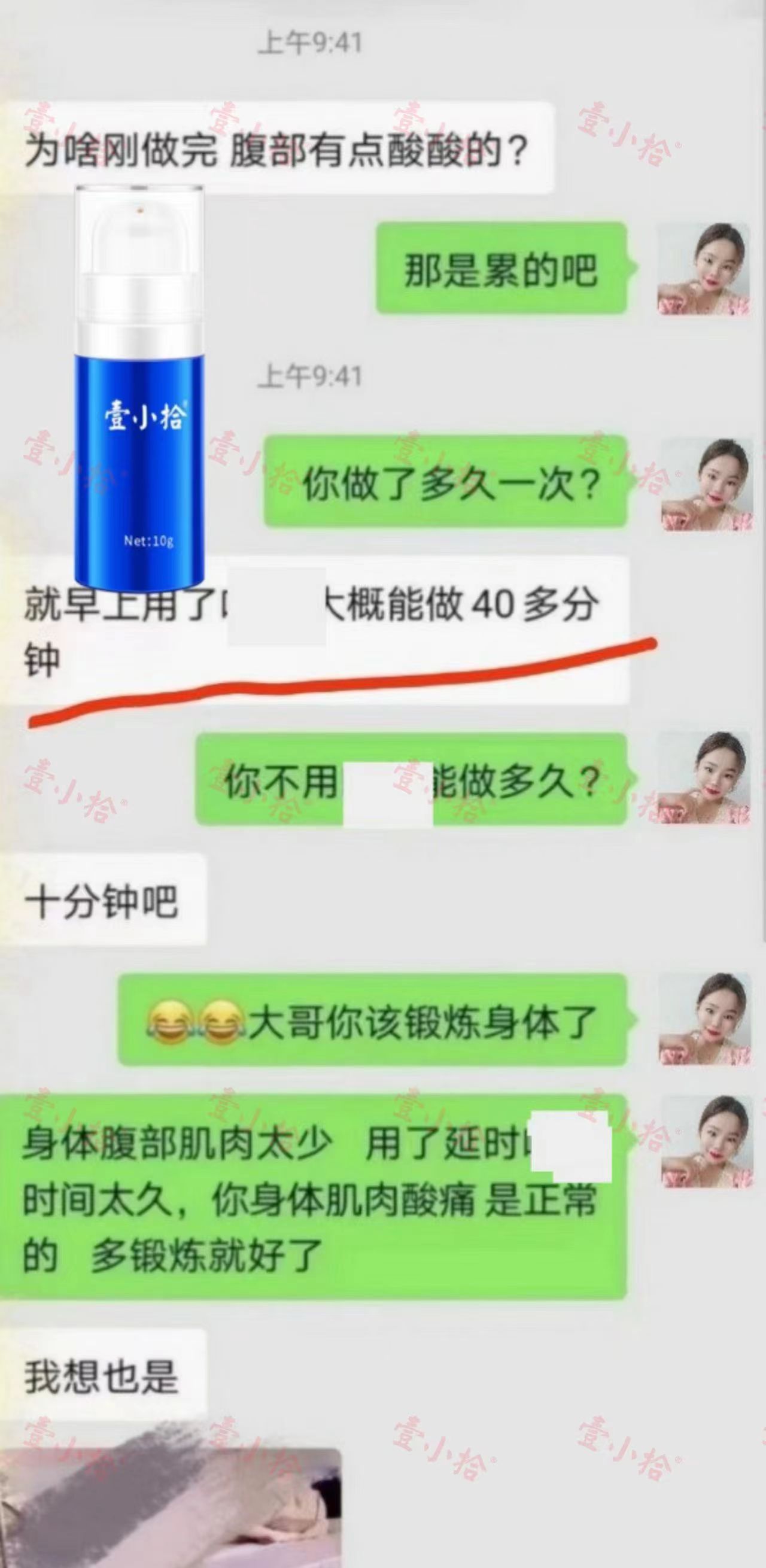 平时也就10分钟左右,没想到用了壹小拾凝胶后,时间直接40多分钟了,确实很不错哦,而且不麻木,床单上全是水,哈哈。